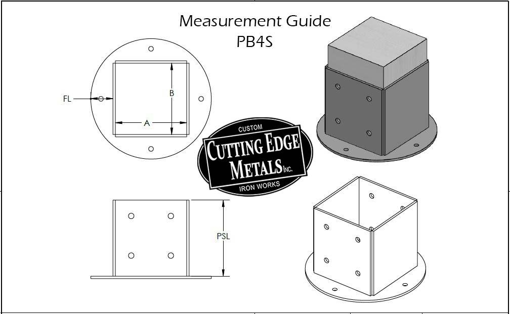 The PB4S wraps the post completely (unlike 2- or 3-sided options), preventing shifting or "kicking out" under load or wind—perfect for high-wind areas or heavy structural demands. Choose slide-through style to sleeve the post in place or floor-mount for direct concrete/wood attachment. Built from premium American steel in customizable thicknesses (1/8" to 1/2"+), it's engineered for real performance with clean mitered edges or simple profiles that add subtle decorative appeal without excess.